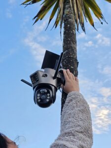 Cámara de vigilancia con panel solar y sensor de movimiento